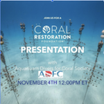 UPDATE: This Webinar has been postponed and will be rescheduled. The Coral Restoration Foundation is working on bringing back staff so they can handle the influx of divers that are now returning to the island. They needed to reschedule until they have the necessary staff to run the webinar.